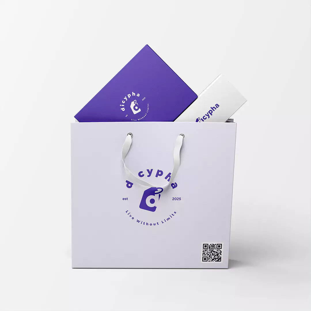 - The entire identity system is modular — easily adaptable for app icons, storefront branding, advertising, and merchandise — giving DiCypha a unified but flexible brand presence across all platforms.