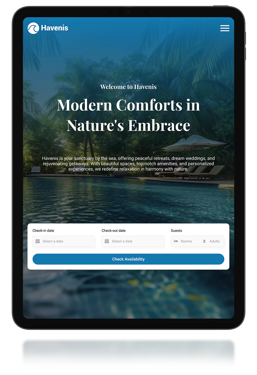 The primary goal of the project was to increase bookings by highlighting the resort’s unique features, including private beaches, luxury villas, and eco-friendly amenities. Havenis also wanted to promote its event-hosting services for weddings, retreats, and reunions, as well as emphasize the convenience of their modern accommodations. Muplix was tasked with bringing these goals to life through a visually captivating and intuitive platform.
