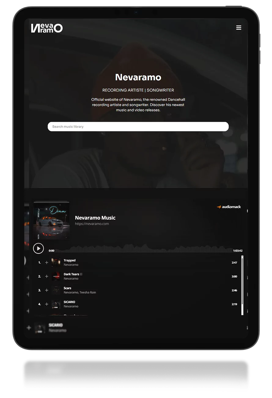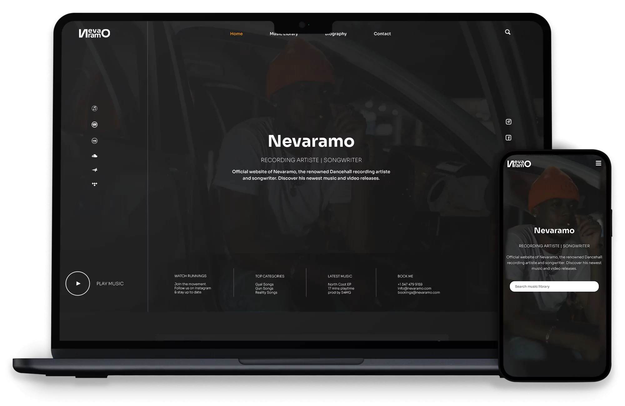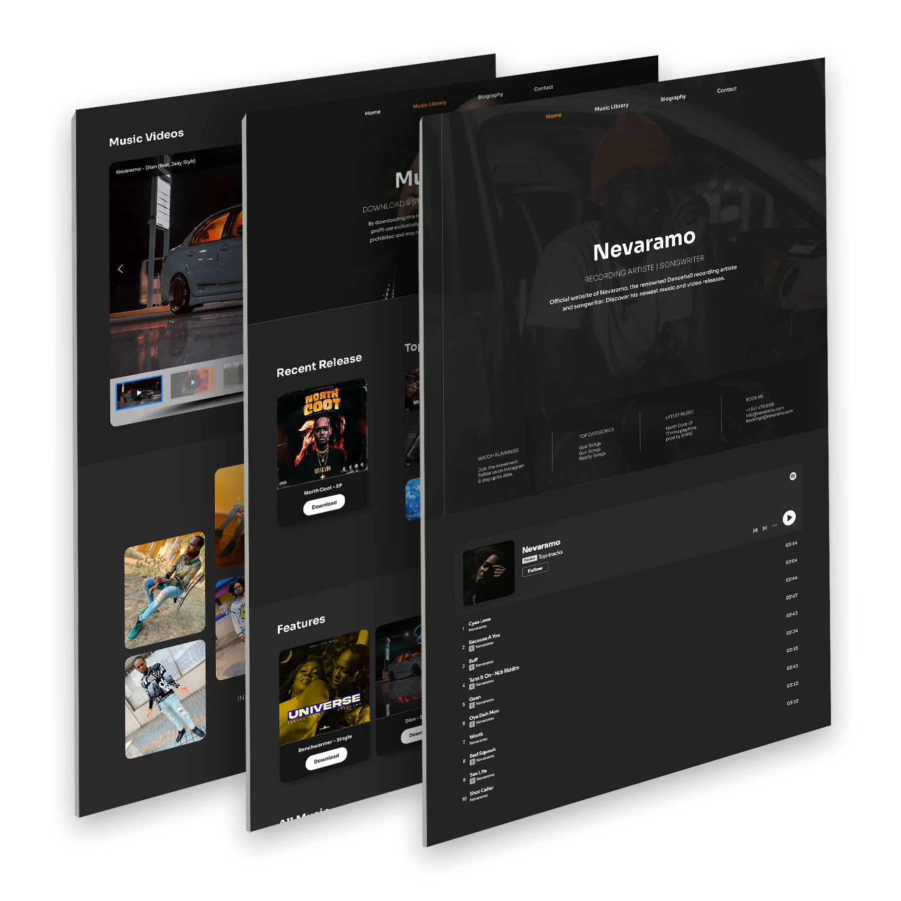 - Sleek, Professional Design: A modern design that reflects Nevaramo's brand and musical style to enhance his online presence.